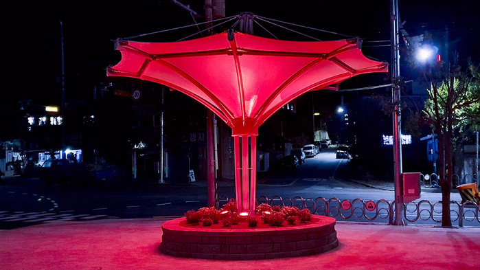 도로 외 나머지 공간은 쉼터 및 광장으로 조성했다. 특히 광장 내 조형물은 나팔꽃 형상으로 빗물이 중심으로 흘러드는 구조로 설계돼 하단부에 물 튀김이 발생하지 않는다. 조형물은 학교 전망이 가려지지 않는 아담한 높이로, 야간 조명을 탑재하여 도시미관을 확보하고 심야 취약시간 범죄 예방 기능과 주민 휴식 공간으로서의 활용도 기대된다.