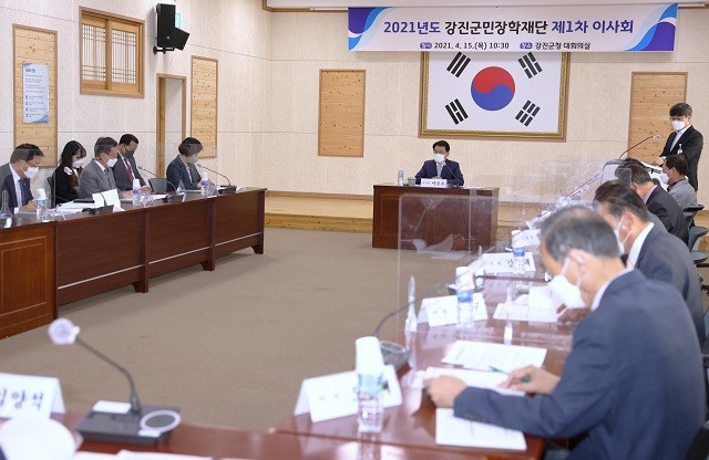 [강진=정찬남 기자] 강진군민장학재단(이사장 이승옥)은 지난 15일 강진군청 대회의실에서 재단 임원들이 참여한 가운데 2021년 강진군민장학재단 제1차 이사회를 개최했다.