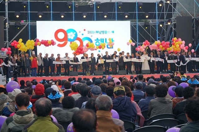 | 해남군, 맛의 향연 미남축제에서'2020 해남방문의 해 선포' 기념식 퍼포먼스 / 사진, 해남군 제공 |