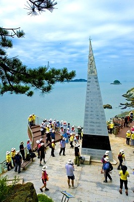 | 북위 34도 17분 21초 땅끝탑을 찾은 관광객들 |