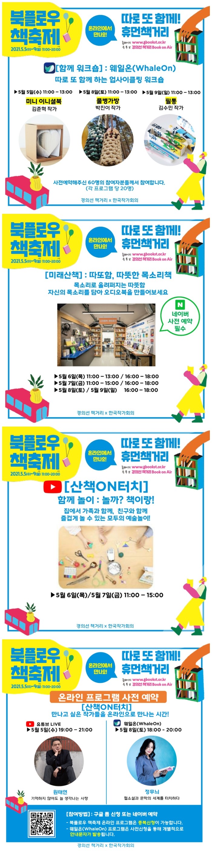 온라인 프로그램에 참여하기 위해서는 사전예약이 필요하며, 네이버 ‘경의선 책거리’ 예약페이지를 통해 신청 가능하다. 사전 예약자에게는 쿠폰 선물도 증정한다.