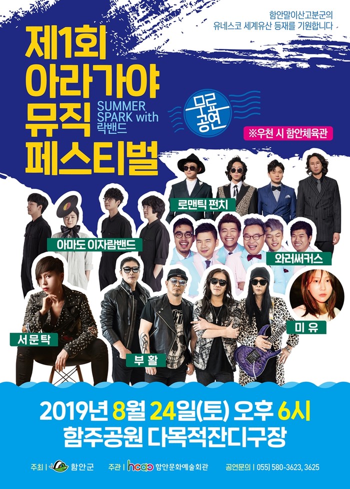대중과 함께 호흡할 수 있는 공연을 통해 아라가야의 중심지인 함안의 위상을 알리고자 올해 새롭게 기획된 ‘제1회 아라가야 뮤직 페스티벌 – SUMMER SPARK with 락밴드’는 지난해까지 진행한 ‘썸머 쿨 콘서트’를더욱 풍성한 출연진과 볼거리로 강화, 공연의 수준을 한층 높였다는 것이 공연 관계자의 설명이다. 이에 덧붙여 “새로운 이름으로 시작하는 만큼 다양한 볼거리와 즐거움을 관객들에게 선사할 것”이라고 말했다.