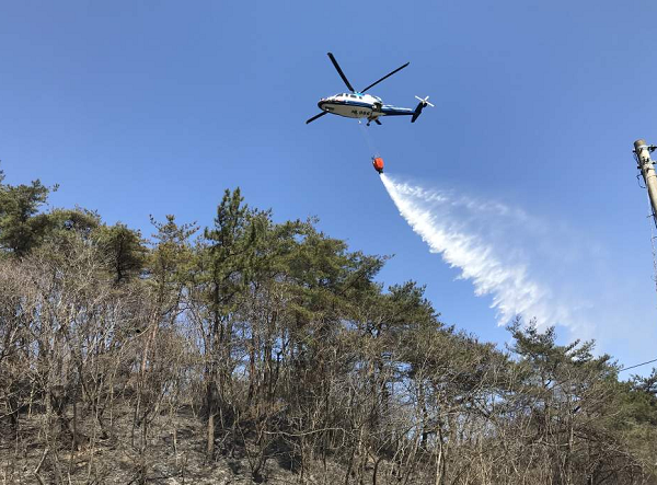 | ▲ 산불 진화에 나선 소방헬기 / 사진, 영암군 제공 |