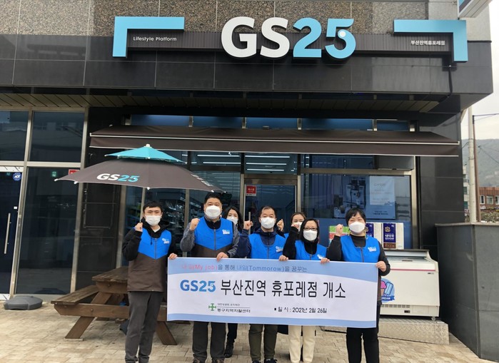 GS25편의점 부산진역휴포레점에는 CS교육 및 점포관리교육등을 이수한 10여명의 자활사업 참여자가 개점과 동시에 차별화된 매장관리와 친절함으로 지역주민 생활의 중심이 되는 편의점이 되기 위해 노력하고 있다.