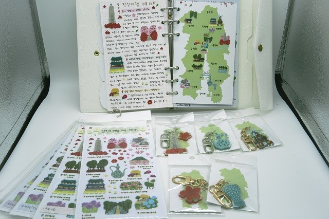 | ▲ 금상-꽃을 품은 강진스티커, 강진군 여행기념 키링 / 강진군 제공 |