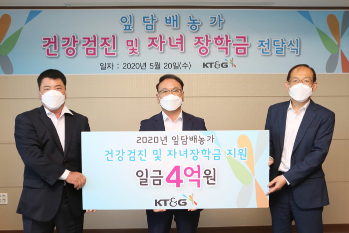 [시민일보 = 홍덕표 기자] KT&G가 코로나19 위기 등으로 어려움을 겪고 있는 국내 잎담배 농가와의 지속적인 상생을 위해 4억원의 복지증진 비용을 농가에 전달했다고 21일 밝혔다.