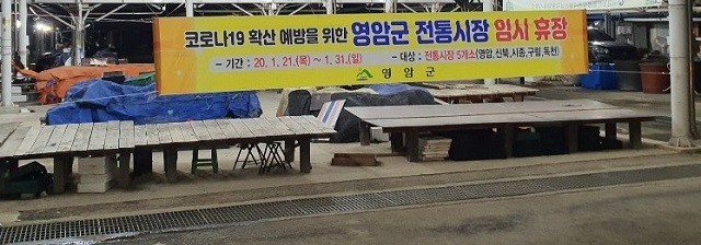 | ▲ 코로나 19 확산 방지를 위한 전통시장 휴장 안내 현수막 / 영암군 제공 |