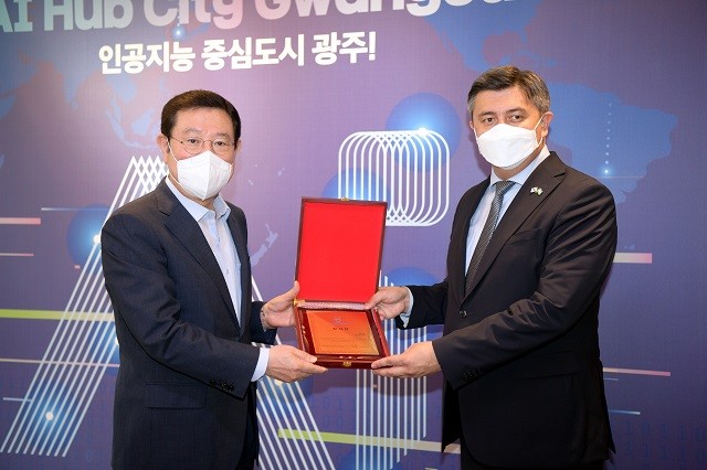 [광주=정찬남 기자] 이용섭 광주광역시장은 24일 오전 시청 접견실에서 우즈베키스탄 노짐 후사노프 고용노동부장관 일행을 접견하고 코로나19 시대 광주시와 우즈베키스탄 양국의 노동시장과 노동환경 등 상호 관심사를 논의했다.