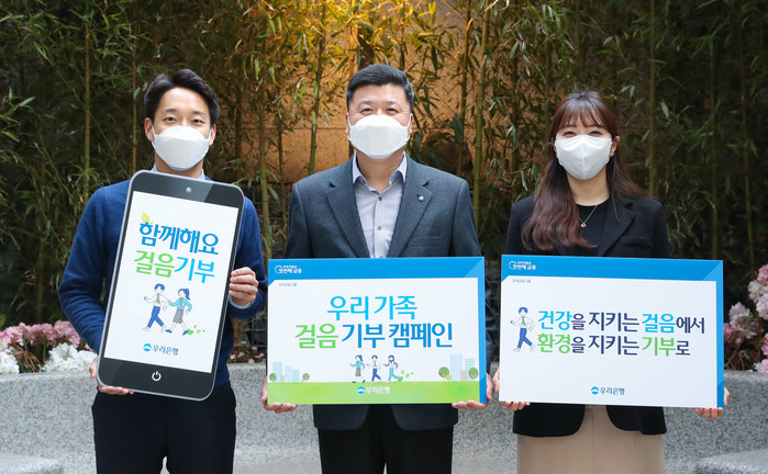 [시민일보 = 홍덕표 기자] 우리은행은 이달 한 달간 임직원이 참여하는 비대면 걸음 기부 사회공헌활동인 '우리 가족 걸음 기부 캠페인'을 전개한다고 2일 밝혔다.