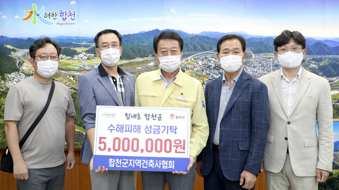 지난 27일 합천지역 건축사협회(회장 박점근)는 수해 피해로 힘든 시기를 겪고 있는 수해민에 써달라며 합천군(군수 문준희)에 긴급수해복구 성금 5백만원을 기탁했다.