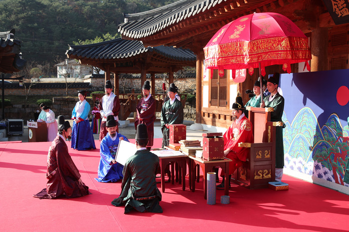 경남 산청군에서 유네스코 세계기록유산 동의보감을 임금에게 올린 예식인 ‘동의보감 진서의(進書儀)’ 재현 공연이 개최됐다.