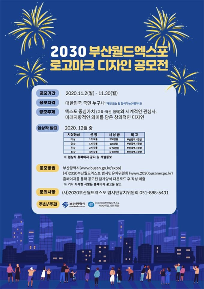 부산시는 (사)2030부산월드엑스포 범시민유치위원회와 함께 전 국민을 대상으로 '2030 부산월드엑스포 로고마크 디자인 공모전'을 개최한다고 밝혔다.