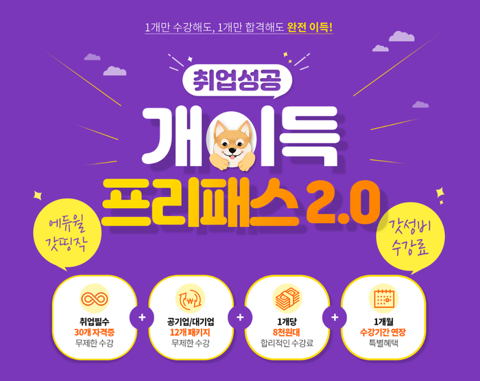취업 준비를 위한 합리적인 ‘개이득 프리패스’ 강의는 에듀윌 홈페이지를 통해 수강신청 및 자세한 내용을 확인할 수 있다.