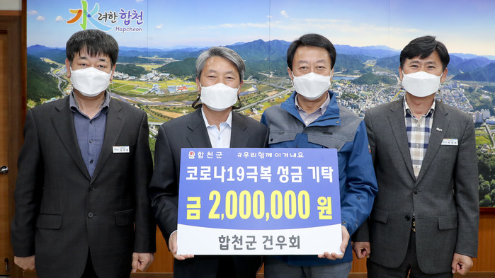 합천군은 합천군건우회(회장 전병철)에서 지난 6일 합천군청 군수실을 방문해 코로나19로 어려움을 겪고 있는 군민들을 위해 써 달라며 200만원을 기탁했다고 밝혔다.
