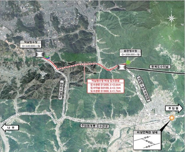 이에 따라 광주시는 346억 원을 투입해 비상도수관로 7.4㎞(도수관로 4.3㎞, 도수터널 3.1㎞)를 부설한다. 올해 7월 설계용역을 착수하고 2025년 12월까지 공사를 준공할 계획이다.