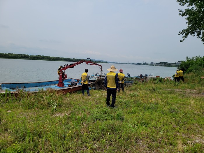 [평택=오왕석 기자] 평택호 내수면 어업계(계장 김영수, 계원 41명)는 지난 26부터 27일 이틀간에 걸쳐 평택호 내 폐어망, 폐어구 및 생활쓰레기 등을 수거하는 여름철 환경 정화활동을 펼쳤다.