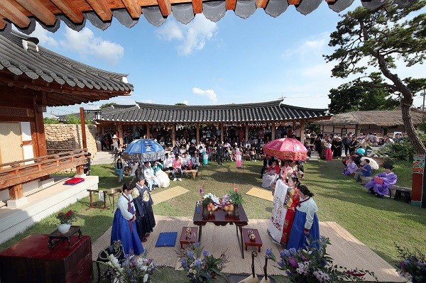 | 강진군 강진읍 소재 사의재에서 열린 전통혼례식 모습=사진, 강진군 제공 |