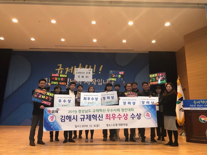 김해시는 경남도가 주최한 ‘2019 규제혁신 우수사례 경진대회’에서 최우수상을 수상했다고 밝혔다.