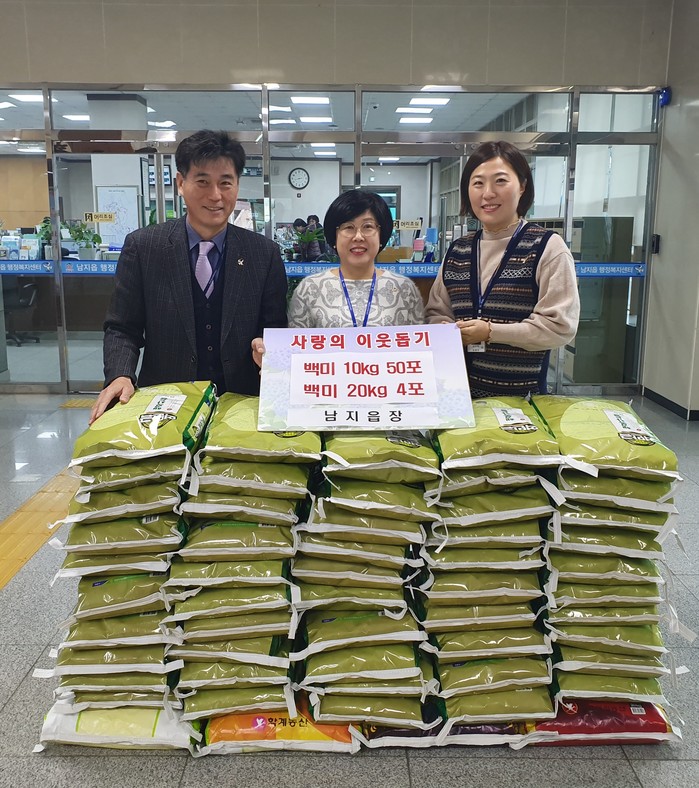 남지읍 행정복지센터에서는 기부받은 쌀과 사비로 구입한 쌀(10㎏ 50포, 20㎏ 4포)을 한부모 가정, 조손가정 등에 설 명절을 전후하여 전달할 계획이다.