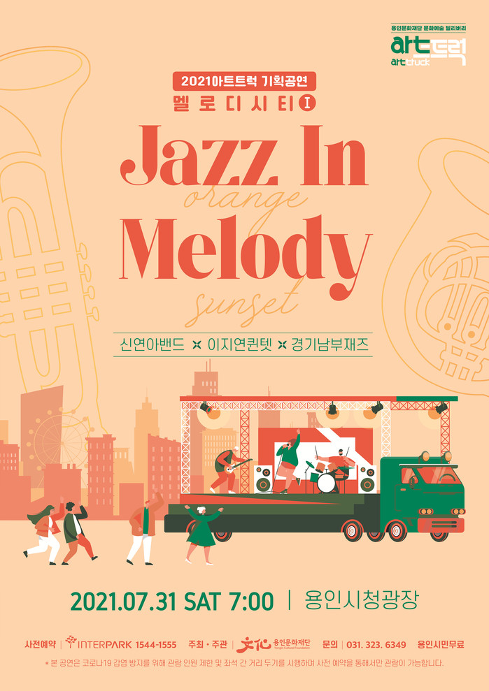 7월 31일, 8월 21일, 9월 11일 총 3회 진행 예정인 이번 공연은 재즈, 어쿠스틱, 국악과 레게 등 다양한 장르로 구성되어 코로나19로 지친 용인시민들에게 위로와 희망을 선사한다.