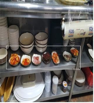 | ▲ 손님이 먹고 남은 반찬을 다시 제공하기 위해 보관 중인 반찬류 |