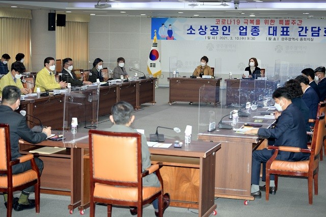 [광주=정찬남 기자] 광주광역시는 10일 시청 중회의실에서 지역 소상공인 업종 대표들과 간담회를 갖고 코로나19 장기화로 인해 현장에서 겪고 있는 애로와 건의사항을 가감 없이 듣고 대책을 모색했다.