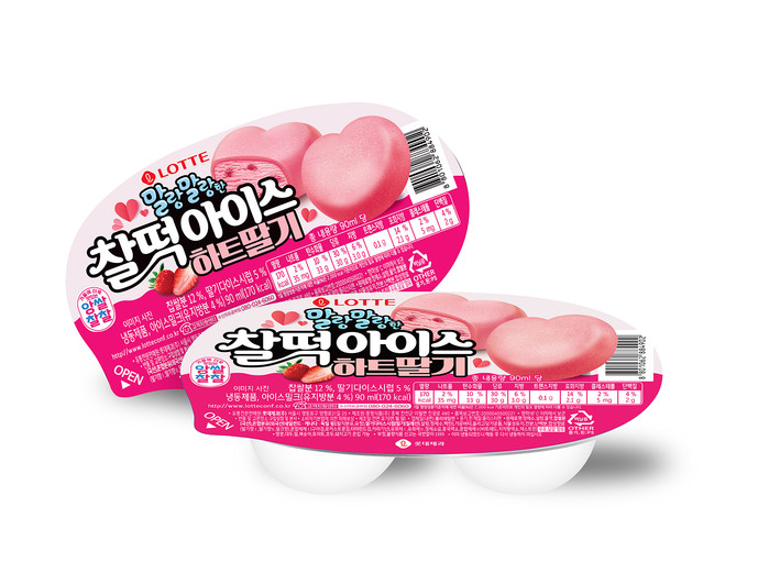롯데제과에 따르면 하트 모양의 찰떡이 특징인 ‘찰떡아이스 하트딸기’는 국내산 찹쌀을 사용, 쫀득한 식감의 분홍색 찰떡이 겉부분을 감싸고 있으며, 찰떡 속에는 상큼하고 달콤한 딸기맛 아이스크림이 들어있다.