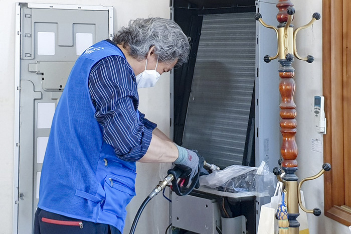 어르신들의 건강을 보호하고 코로나19 감염을 예방하기 위해 순차적으로 경로당을 방문해 에어컨을 청소했다.