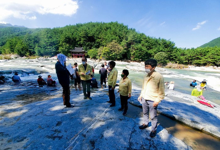 함양군은 본격적인 여름 휴가철을 맞아 16일 함양군의 대표적 피서지인 안의면 농월정과 용추계곡 등지에서 물놀이 안전 및 코로나19 점검을 실시했다고 밝혔다.