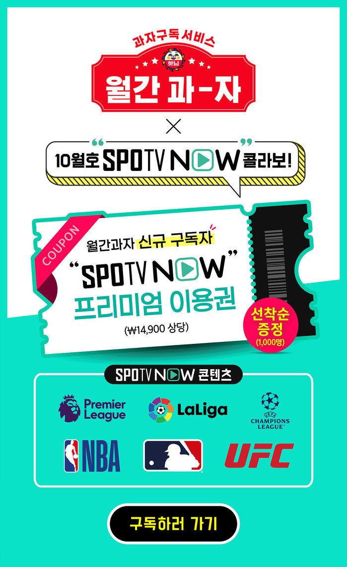 [시민일보 = 여영준 기자] 롯데제과의 과자 구독 서비스 ‘월간과자’가 온라인 스포츠 플랫폼인 ‘스포티비 나우(SPOTV NOW)’와손잡고 과자와 ‘스포티비 나우’ 이용권을 같이 구독할 수 있는 컬래버 서비스를 선보인다.