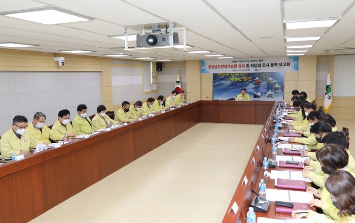 경남도인재개발원의 성공적 유치를 위해 개최된 이날 보고회는 지역경제정책연구원 여정욱 과장의 연구용역 결과 설명에 이어 관련 의견청취 및 참석자 토론 등의 순으로 진행됐다.