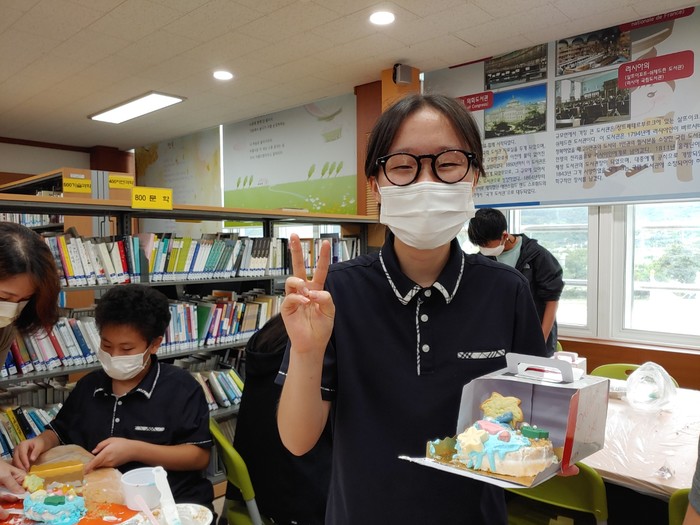 체험 주제는 ‘여름바다 케이크 만들기’로 케이크 디자인을 직접 구상하고 다양한 방법으로 꾸며보는 활동을 통해 파티시에를 간접 체험했다.