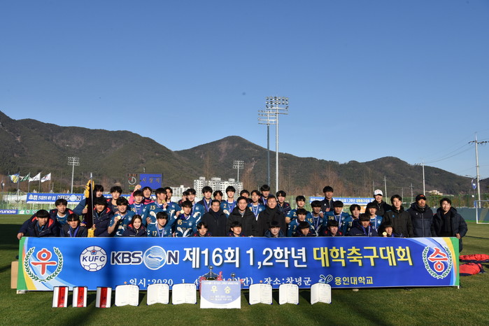 전국 대학축구 강호 26개팀 1,000여 명의 선수들이 참가한 가운데 이장관 감독이 이끄는 용인대학교는 16일 창녕스포츠파크 화왕구장에서 열린 결승전에서 서혁수 감독이 이끄는 제주국제대학교를 상대로 후반 8분에 터진 이성민 선수의 선제골을 시작으로 연이어 득점에 성공, 최종스코어 3-0으로 승리를 거둬 2020년 첫 대학축구 왕좌에 올랐다.