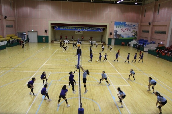 | 해남군 우슬실내경기장에서 동계전지 훈련을 하고 있는 배구선수들 / 해남군 제공 |