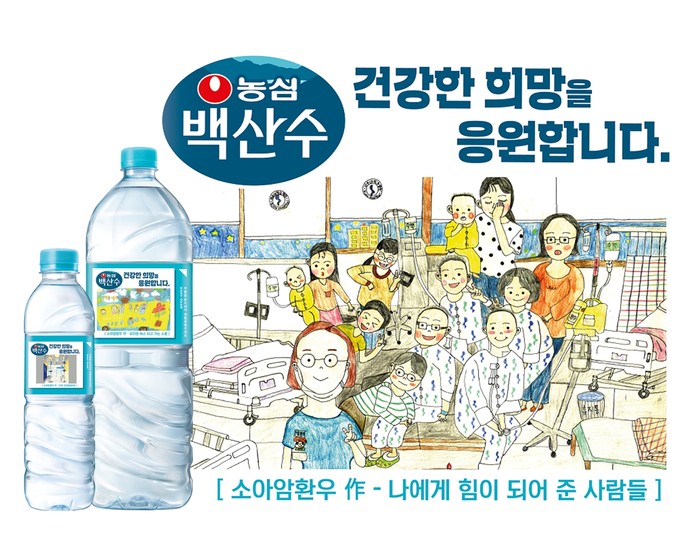 농심 관계자는 “백혈병소아암 환아와 완치자를 응원하고, 사회적 인식을 개선하기 위해 수상작을 삽입한 백산수 한정판을 출시했다”며 “병마와 싸우고 있는 환아들에게 조금이나마 힘이 되길 바란다”고 말했다.
