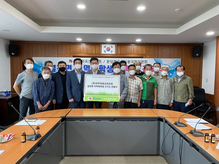 [시민일보 = 홍덕표 기자] 부영그룹 무주덕유산리조트가 최근 무주군 설천면 주민자치센터에서 원당천유수인용대책위원회를 통해 설천면 내 저소득가구 대학생 40명에게 1인당 100만원씩 총 4000만원의 장학금을 전달했다.