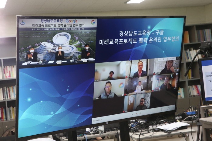 경상남도교육청(교육감 박종훈)이 18일 구글(Google)과 미래교육 프로젝트 협력을 위한 온라인 업무협의를 가졌다. 경남교육청과 구글은 인공지능 기반 구글 자격증 취득 온라인 교육과정과 경남형 문화예술 플랫폼인‘경상남도-구글 아트 앤 컬쳐(Art & Culture in 경상남도)’를 구축키로 했다.