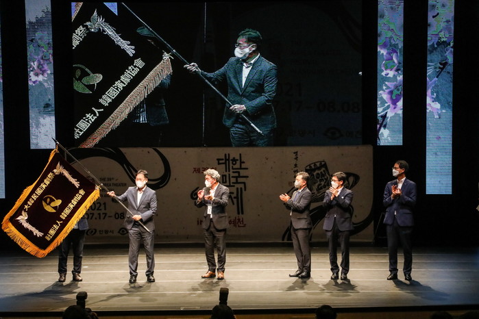 시는 지난 8일 예천군문화회관에서 열린 ‘제39회 대한민국연극제 in 안동.예천’폐막식에서 ㈔한국연극협회(이사장 오태근)로부터 차기 대한민국연극제 대회기를 이양받았다.