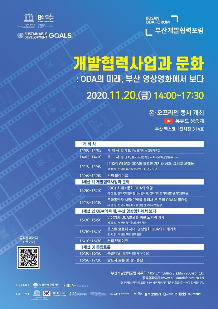 20일(금) 오후 2시부터 온라인과 오프라인을 통해 국내외 전문가, 개발협력 관계자 및 일반인들을 대상으로 ‘개발협력사업과 문화: ODA의 미래, 부산 영상영화에서 보다’라는 주체로 제5회 부산개발협력포럼이 부산 벡스코에서 개최된다.