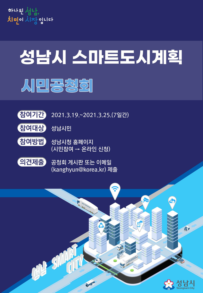 | ▲ 스마트도시과-성남시 스마트도시계획 온라인 시민공청회 안내 포스터. |