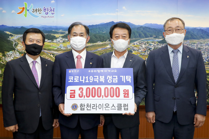 합천라이온스클럽(회장 최정규)는 지난 22일 합천군청을 방문해 코로나19 장기화로 어려운 시간을 보내고 있는 군민들을 위해 써달라며 성금 300만원을 기탁했다고 밝혔다.