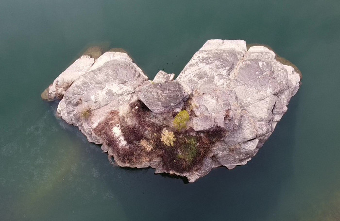 | ▲ 의령 정암 리 남강 변 상공에서 바라 본 하트 모양의 솥 바위 |