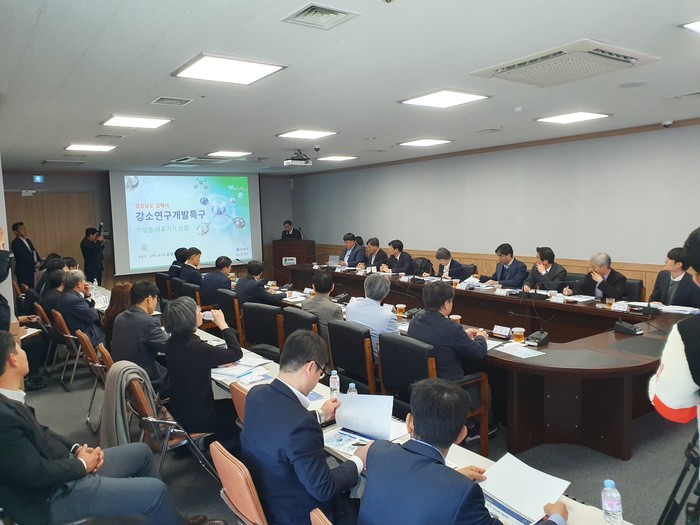 간담회 참석자들은 ▲김해 의생명·의료기기산업 발전을 위한 국책연구기관 이전 유치 ▲지역혁신선도연구센터 사업선정 ▲산학융합지구 조성사업 지원 등을 건의하고 토론했다.