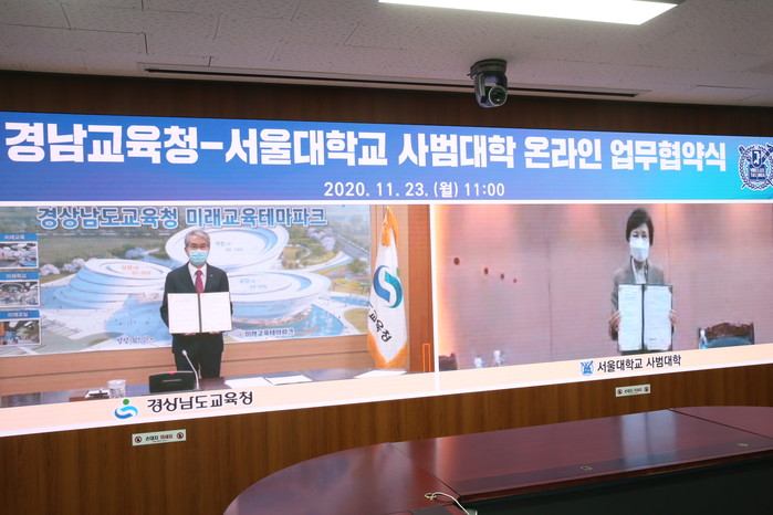 경상남도교육청(교육감 박종훈)은 23일 미래교육지원플랫폼인 ‘아이톡톡’ 빅데이터 구축을 위해 서울대학교 사범대학(학장 김희백)과 공동 연구·개발 업무협약을 체결하였다.