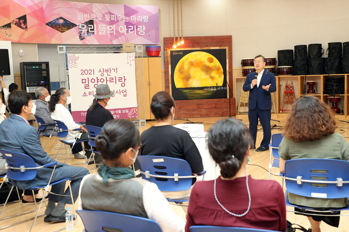 밀양시(시장 박일호)는 지난 30일 밀양아리랑전수관(밀양아리랑아트센터 별관 1층)에서 소리꾼 수업 수강생 등 30여 명이 참석한 가운데 2021년 상반기 밀양아리랑 소리꾼 육성사업 수료식을 개최했다.