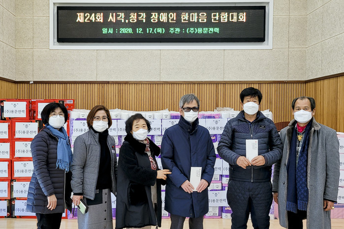 ㈜용문전력 이점용 대표는 매년 시·청각 장애인 및 보호자들을 초청하여 시·청각 장애인 한마음 단합대회 행사를 개최했으나, 올해는 코로나19로 인해 행사를 취소하고 방역지침을 준수하여 간소하나마 희망물품을 전달하여 사랑의 온정을 전했다.