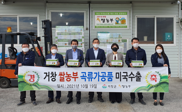 거창군은 지난 19일 거창 국산 농산물 제조유통 전문회사 쌀농부(대표 정종재)에서 제조한 곡류가공품이 미국 한인시장 공략을 위한 미국 첫 수출을 기념하는 선적식을 가졌다.