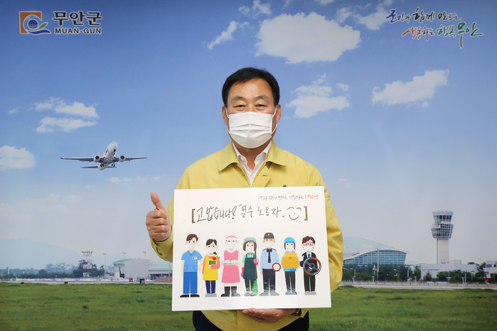 | ▲ 김산 무안군수, 불가피한 필수노동자들을 응원하는 ‘고맙습니다 필수노동자!’ SNS캠페인에 동참했다.(출처=무안군청) |