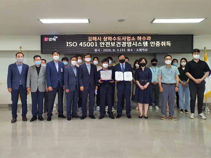 김해시는 상하수도사업소 하수과 공공하수처리분야(맑은물순환센터)에서 국제 표준 안전보건경영시스템 인증인 ISO 45001을 취득했다고 밝혔다.