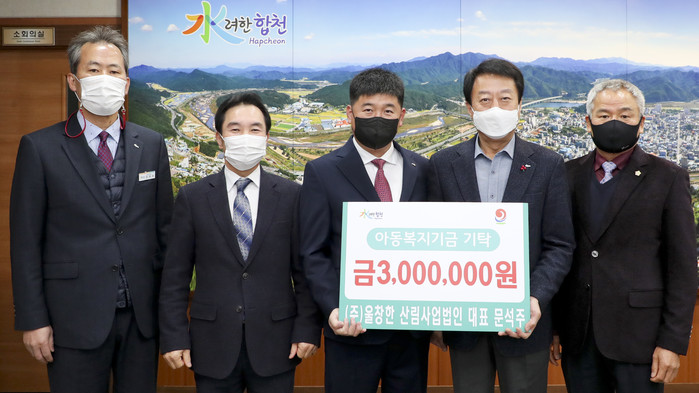 합천군 소재 ㈜울창한 산림사업법인(율곡면 소재) 대표 문석주는 지난 18일 합천군청(군수 문준희)을 방문해 아동복지기금 조성에 보태달라며 3백만원을 전달했다.